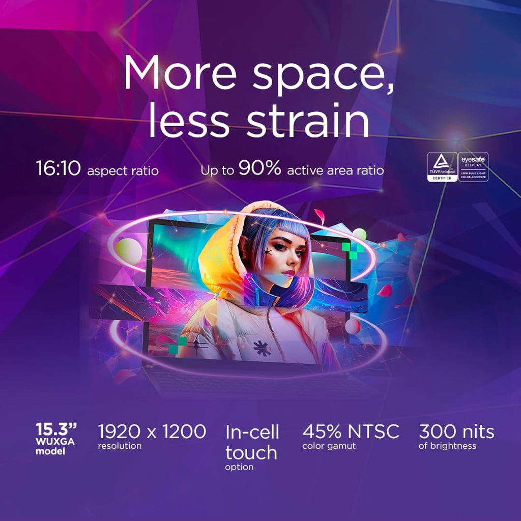 • Explore stunning visuals with the IdeaPad Slim 5i’s 14" WUXGA display; Its 90% active area ratio maximizes viewing, while up to 100% DCI-P3 color gamut ensures photo-realistic colors